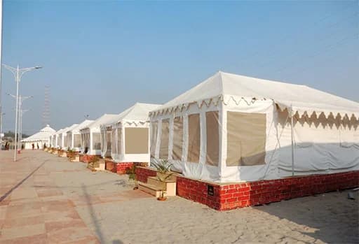 In ogni Kumbh Mela accogliamo i visitatori del Kumbh Mela provenienti da tutto il mondo in modo molto confortevole, con cibo igienico nelle tende e nel campo. Queste tende si trovano sulle rive del fiume Gange e sono facilmente accessibili al Mela – situato non lontano dal principale luogo di balneazione – il Sangam, e dai campi del Santo Mela.