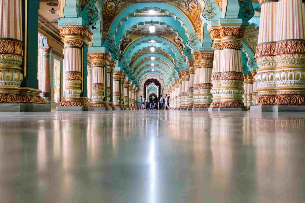 Il Mysore Palace, con la sua architettura indo-saracena, è un piacere visivo. Il palazzo è splendidamente illuminato la domenica e durante il festival di Dussehra, creando un’atmosfera magica.