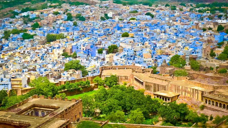 In mattinata partenza per Jodhpur. All’arrivo sistemazione in albergo. Il pomeriggio è dedicato alla visita del forte Meherangarh, costruito nel 1457 su di una collina alta 125 m. Questo maestoso forte si estende su una superficie di 5 km quadrati ed è caratterizzato da un’enorme cinta di mura con 7 porte. Proseguimento con la visita di Jaswant Thada, un imponente monumento in marmo bianco dedicato alla memoria del Maharaja Jaswant II. Pernottamento in albergo.
